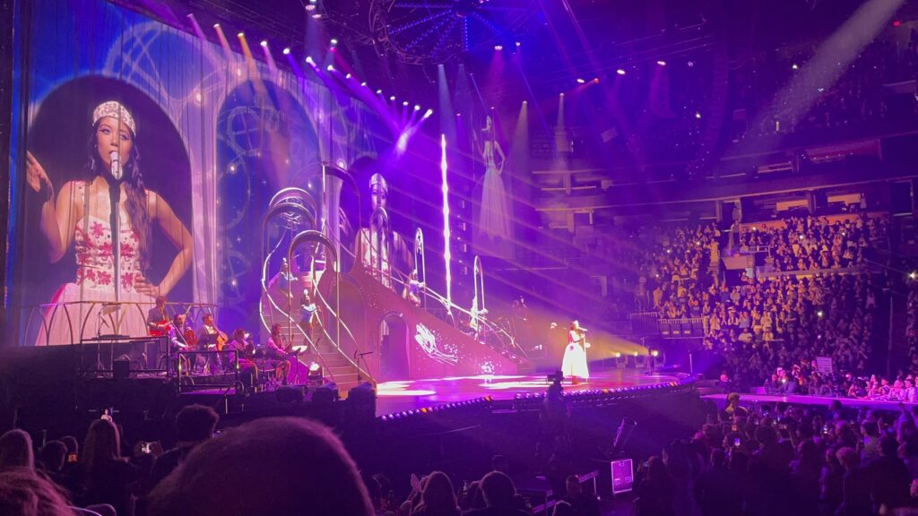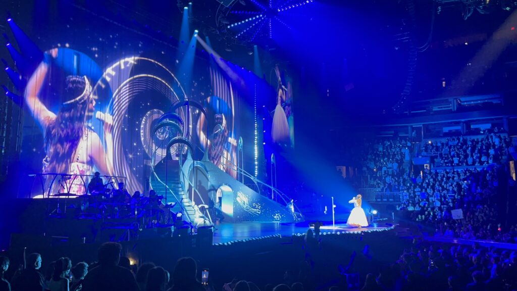 In addition to her graceful presence, the atmosphere and staging made the concert feel magical. From the twirling lights during “Carousel” to the singer circling on the hands of a clock as she sang “Tough Luck,” her visuals made each song feel like an immersive story.