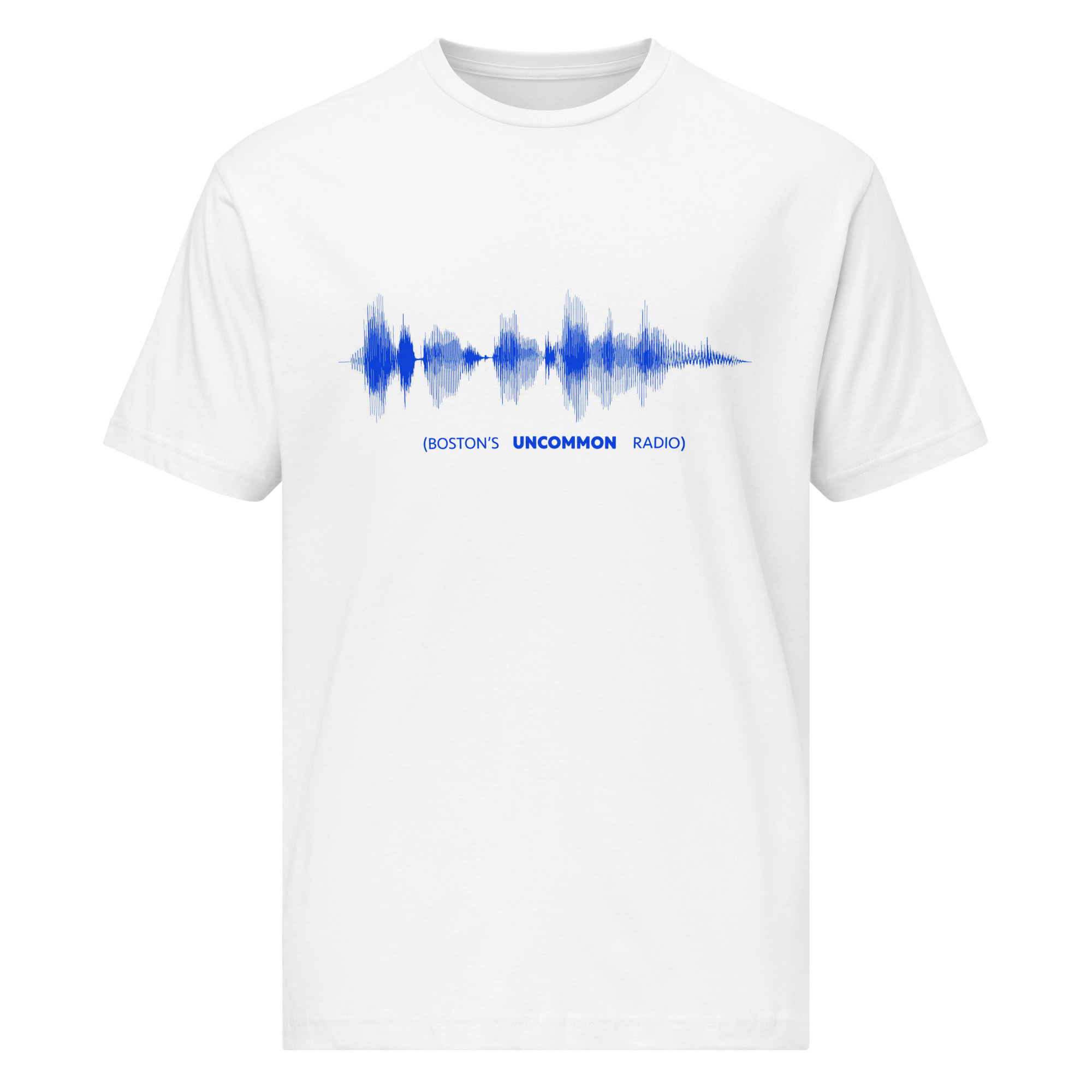 These are the actual soundwaves of George Knight’s own iconic voice saying “Boston’s Uncommon Radio” printed on it! Wear the sound of 88-9 on this soft and durable everyday tee that pairs easily with anything. Its fine jersey fabric feels smooth and comfortable, while the tailored fit keeps it looking fresh wash after wash. A must-have for casual looks and layering.