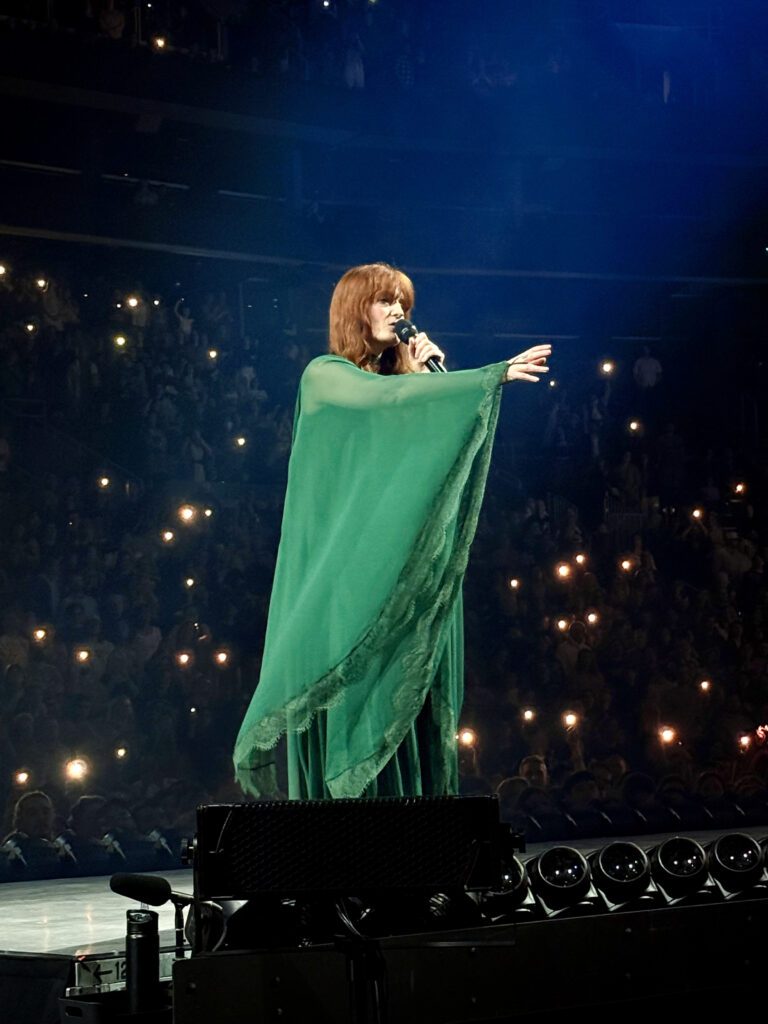 All around me, phones disappeared. Strangers danced like old friends. Welch, who spent the entire night floating across the stage in an emerald green dress like some ethereal being, suddenly felt less like an untouchable force and more like a giddy, redheaded child, spinning, and dancing barefoot, completely unburdened.