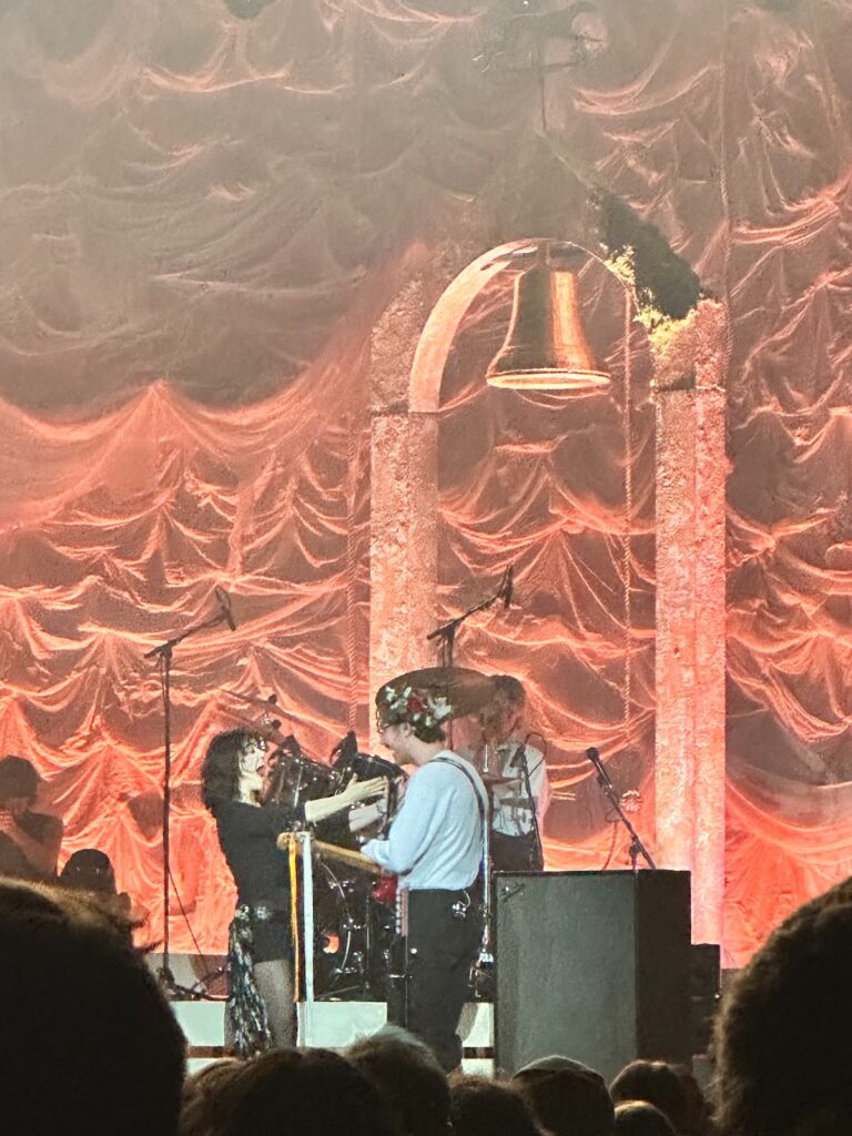 They opened with Florence Road, who are a rock band from Ireland. The band consists of lead vocalist Lily Aron, guitarist Emma Brandon, bassist Ailbhe Barry, and drummer Hannah Kelly. I was personally impressed with the clarity and resonance of Lily’s tone. I think she did a great job of setting off the tone of the concert and hyping up the audience. I heard murmurs around me that confirm that she did have a great voice live. Their set ended after roughly 30 minutes, and The Last Dinner Party performed right at 9 pm.