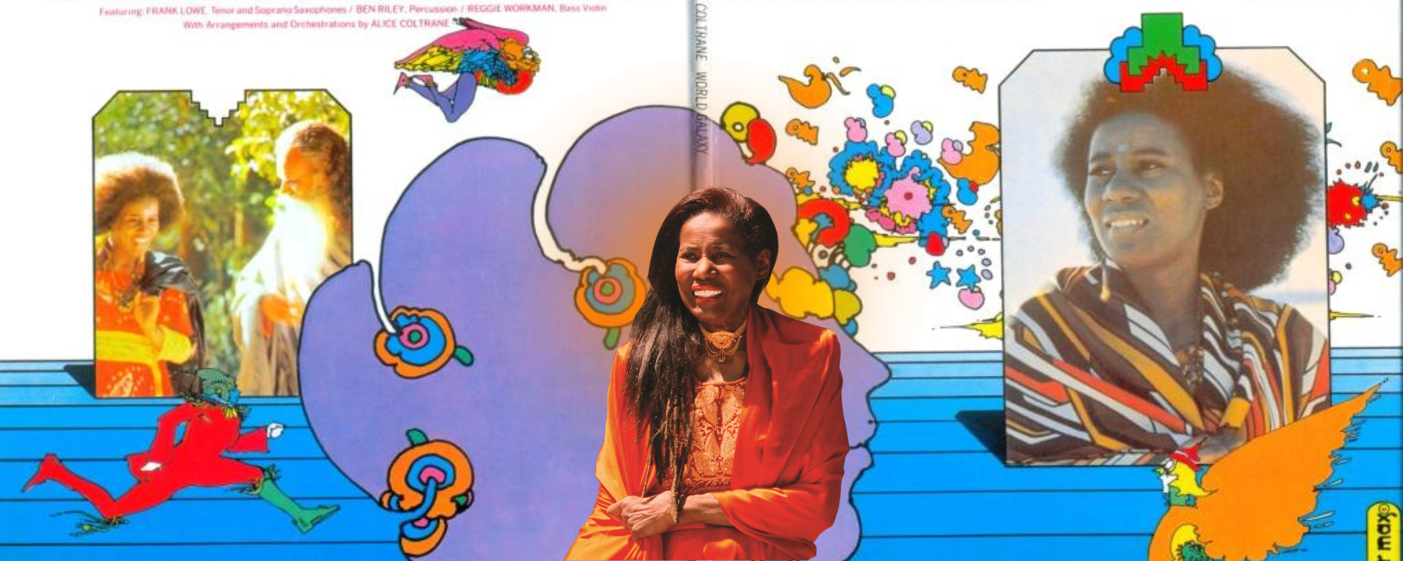 Alice Coltrane began formally making solo music after the death of her husband, the renowned jazz musician John Coltrane, in 1967. She began initially as a band leader, with her first works focusing on a traditional jazz sound, but by 1971 she began to compose a quartet for four landmark albums, Journey in Satchidananda (1971), Universal Consciousness (1972), World Galaxy (1972), and Lord of Lords (1972). Within these four works she dives deep into her spiritual practices, incorporating rich orchestration, her signature work on the harp, classical melodies, and electronic organ all into one deeply expressive oeuvre. Honing in more specifically, World Galaxy, which, on November 15th, celebrates 51 years since its recording and 50 years since its release, displays her progression from traditional jazz into spiritual elation.