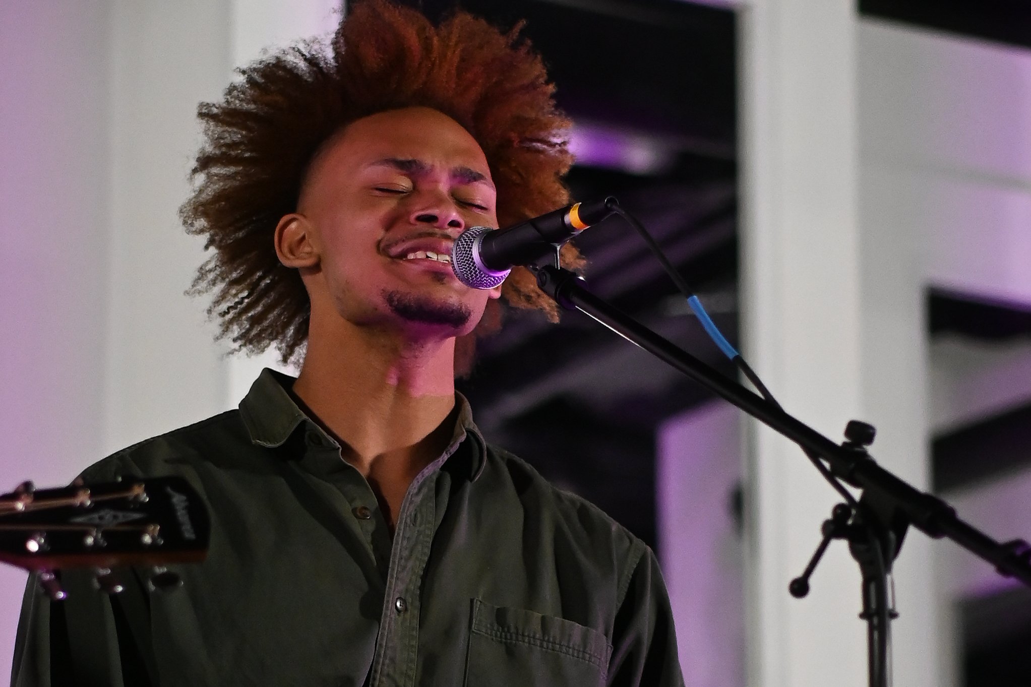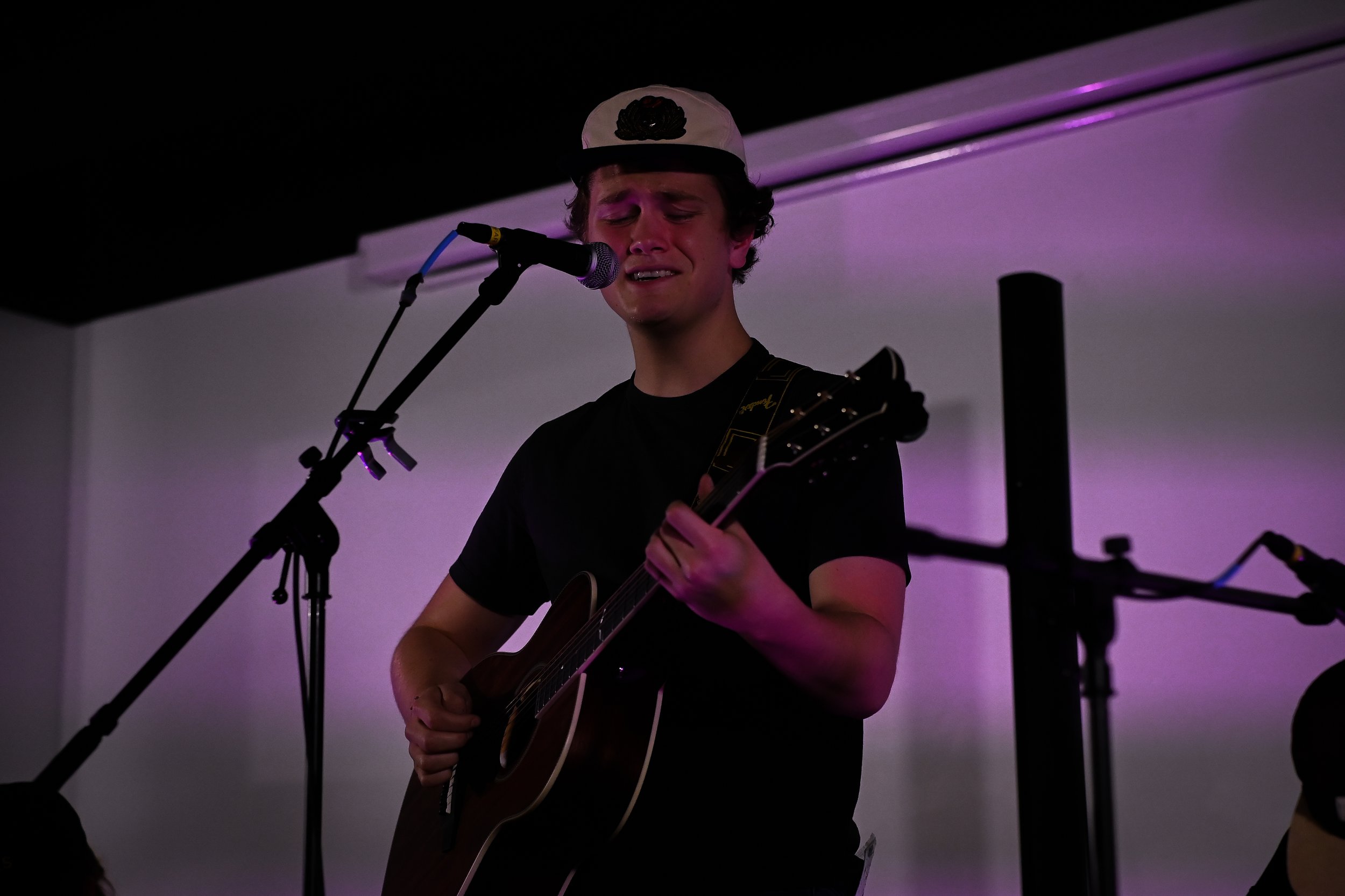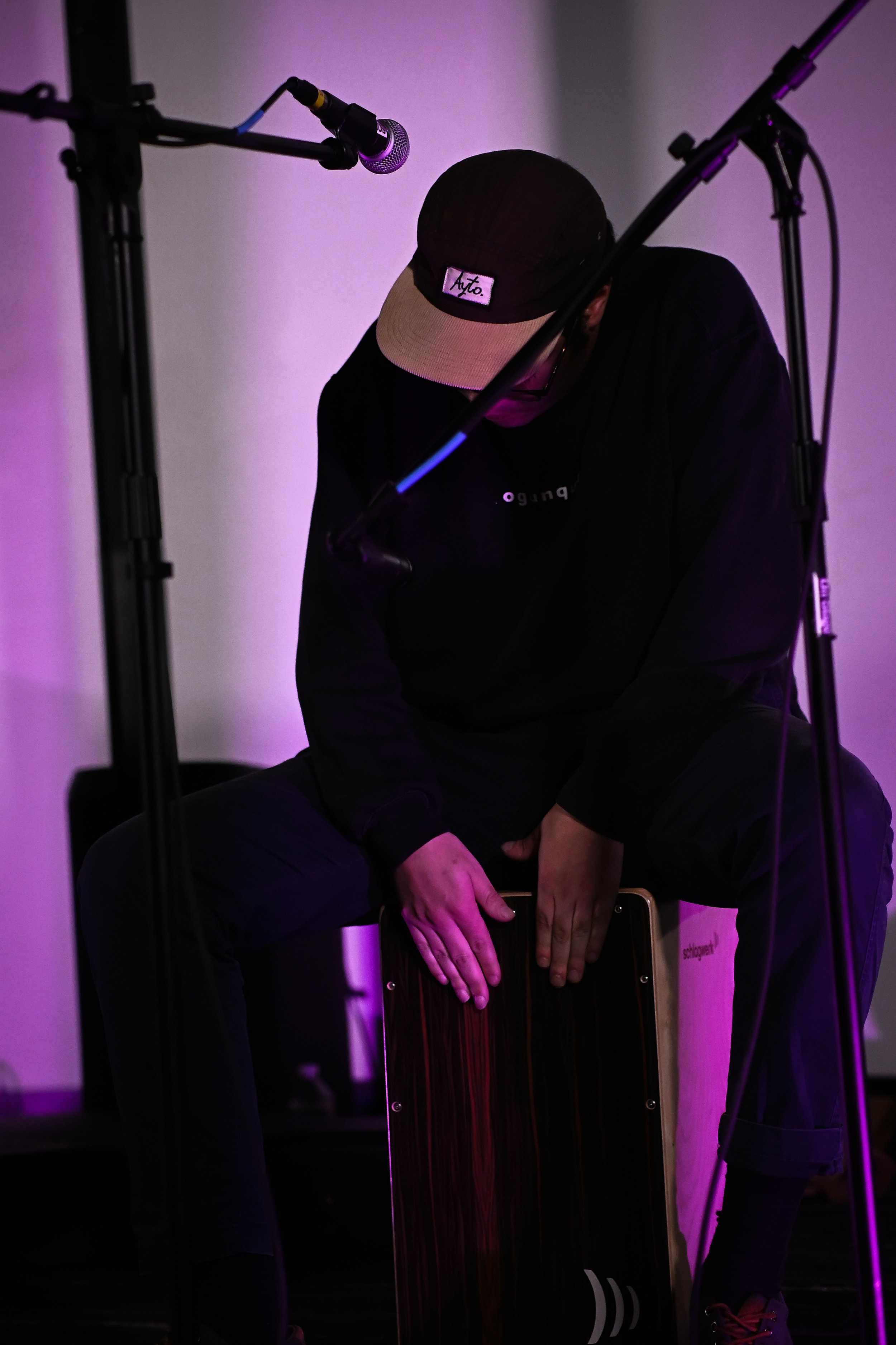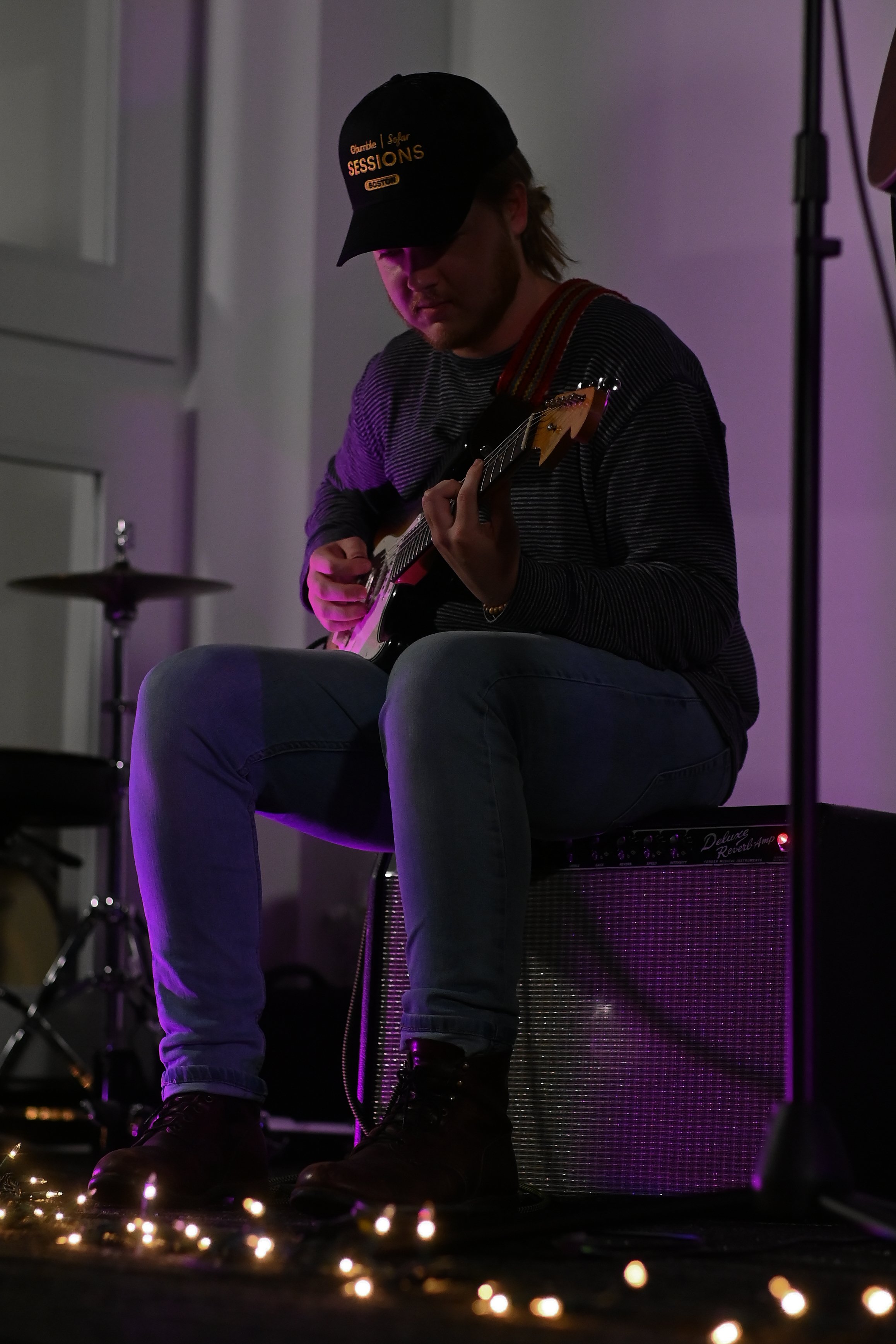 Anonymity was the name of the game at this event, and until the night of the gig, information was deliberately sparse — until the performers took to the stage, I didn’t even know who was performing. On the bill were, in order of appearance, G Luné, Berklee’s premiere vibe curator (and previously featured performer at Noise Complaint Productions’ debut show), Tiny Habits, a vocal and acoustic trio also from Berklee, and Juniper, an established local group who synthesize blues, jazz, and effortless groove into a smooth and seductive sound. Each band played a bite-sized twenty minute set, more than enough time for them to set the mood for a crowd of strangers to get closer to both the music and to each other.