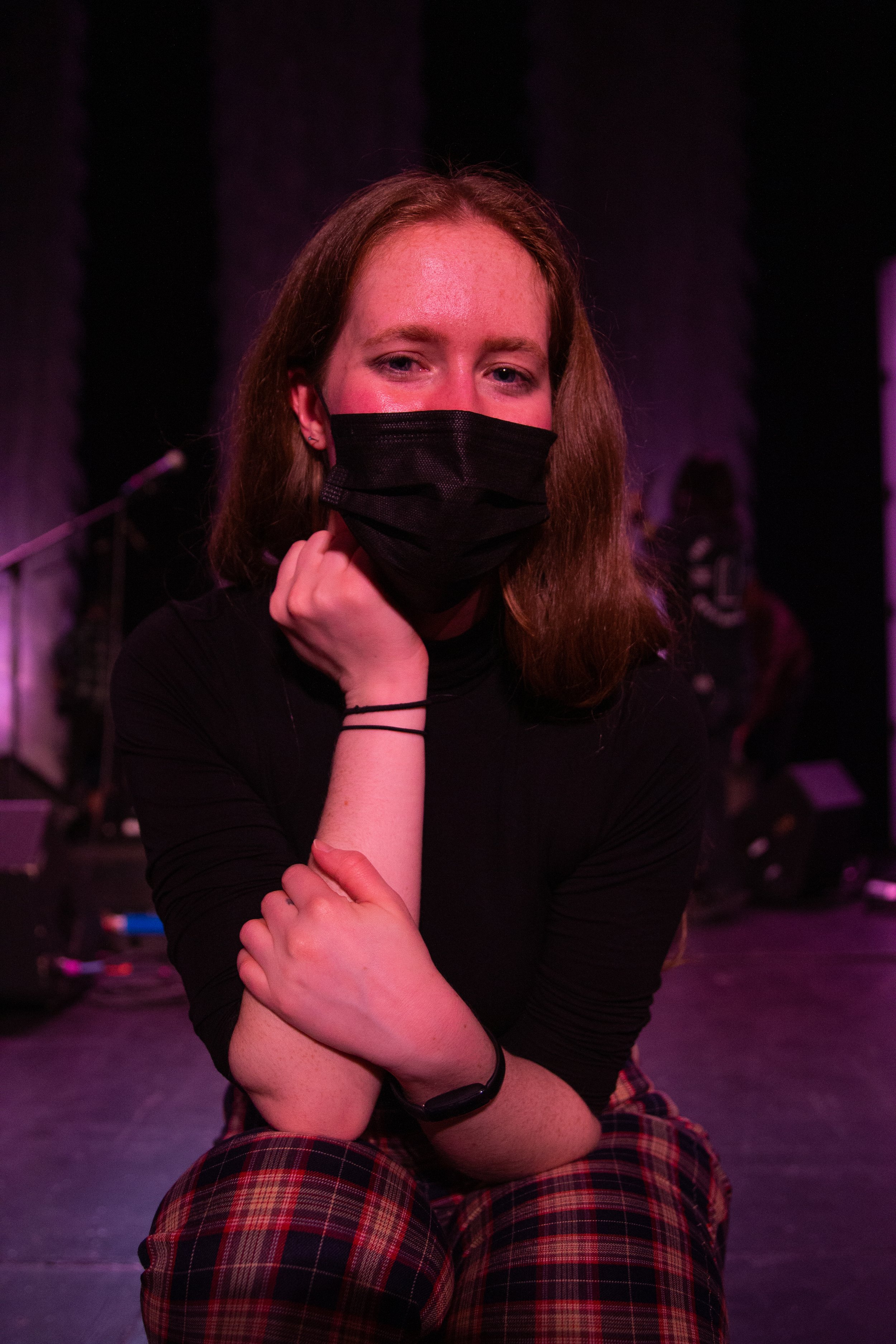 Sidney Gish greeted me backstage in the Paramount theater, perched alone on a chair in a dressing room that dwarfed her. She carried almost nothing from what I could see– some equipment, a small personal bag, and a laptop connected to a portable microphone.