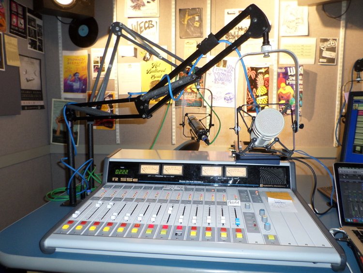 Our studio features: One 12 channel on air-console, two RE27 microphones, two RE20 microphone, two CD players, one cassette player, and one record player. What will your show use?